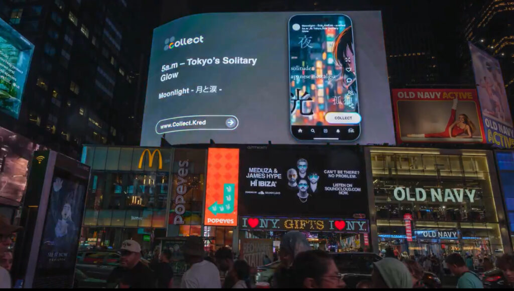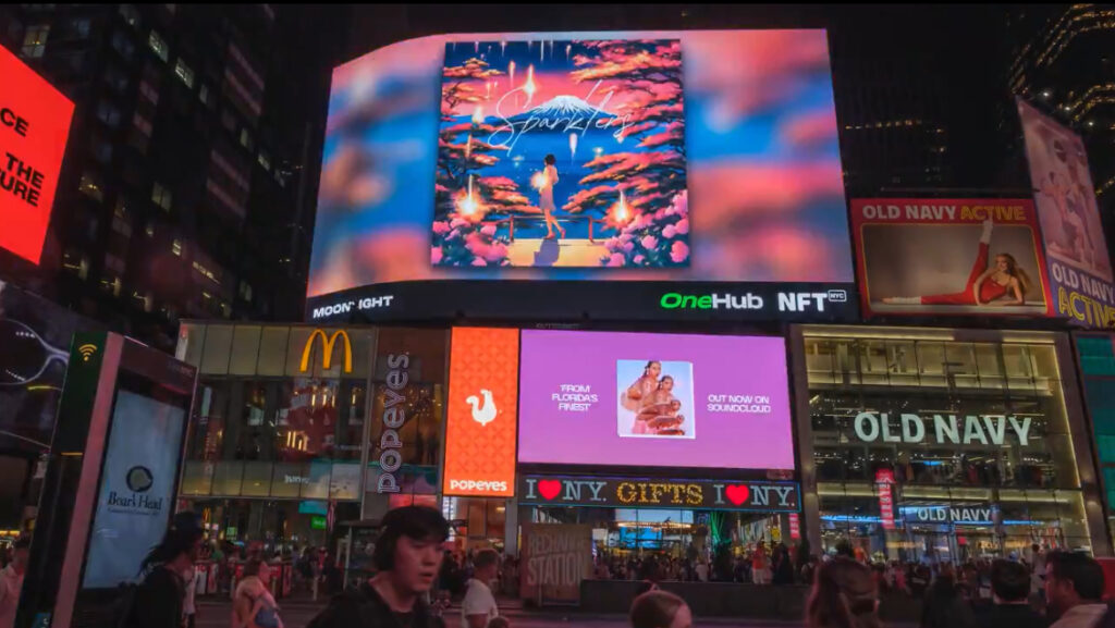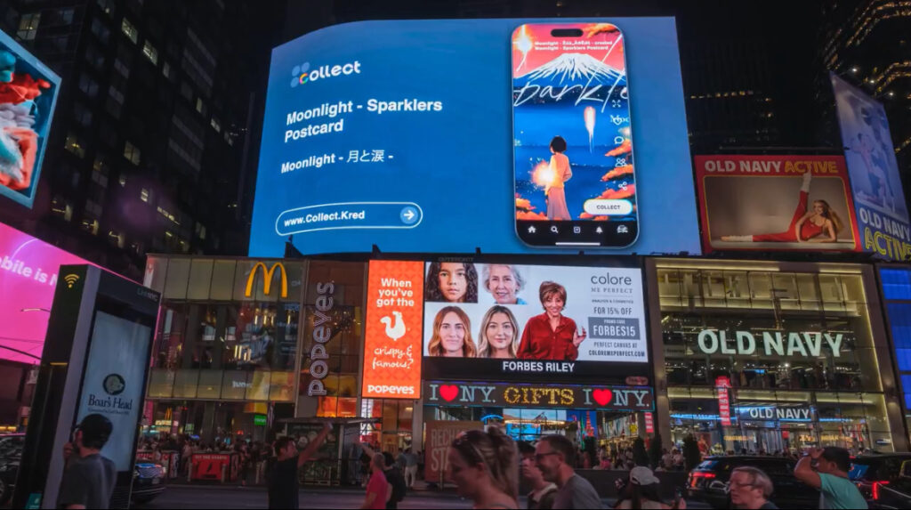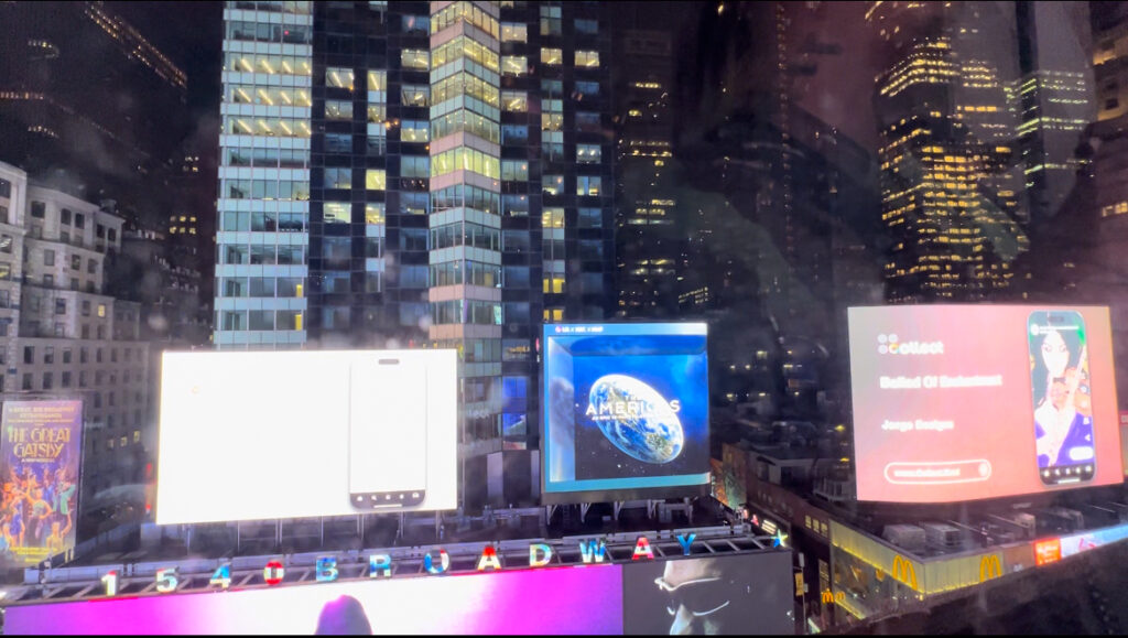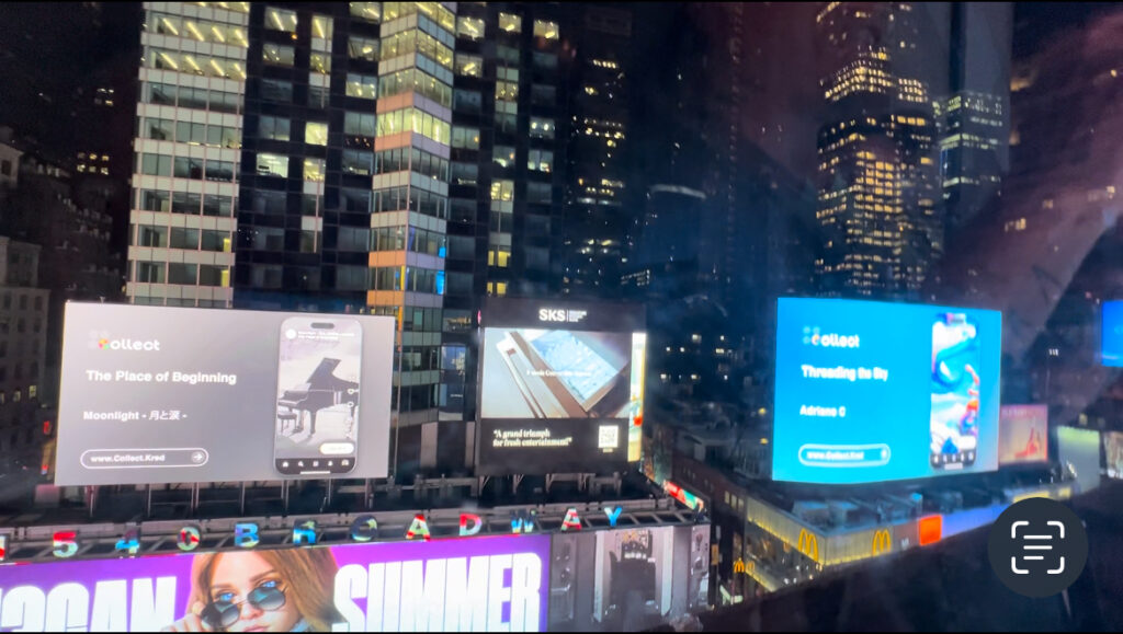 Then came the long-awaited Times Square showcase. Over the course of an hour, multiple works were projected. During that time, five of my NFT works were displayed, and one of them was even shown twice.